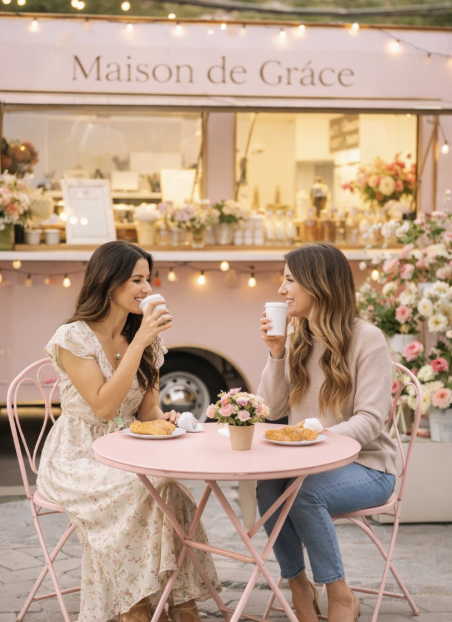 A Parisian-inspired mobile café offering coffee, matcha, and floral experiences for events and gatherings.